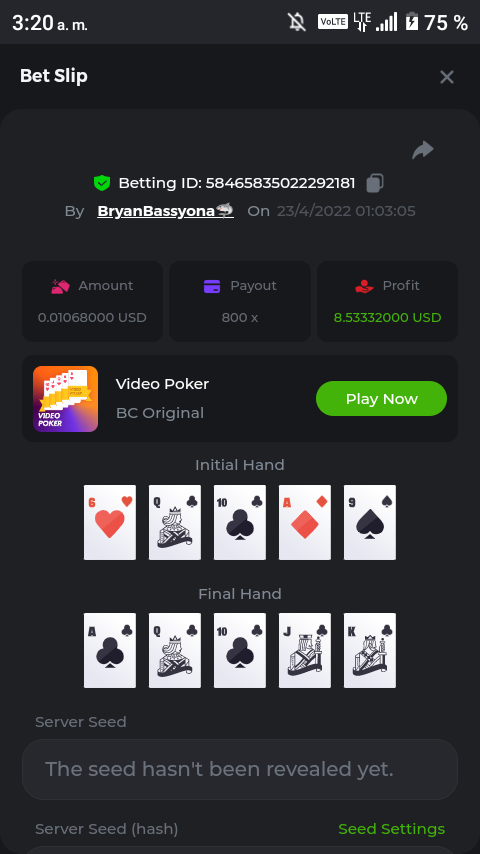 It's been 2 months, to be exact, when BC changed my life. It was April 14, 2022, when I played Book of Wolves and hit 1028.50X. The screenshot of my winning moment is still my wallpaper. With the money I got, I shared it to my family, relatives and friends. I poured a lots of rains and drops to share the blessings I got, and tip all of my bc friends. I won't ever forget that moment.