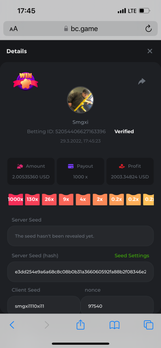Best moment here in bc game is when i won like 1000$ last month before my birthday May 24 💚.