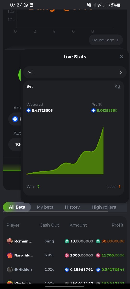 Mi mejor experiencia fue sin duda cuando por equivocación aposte un all in con 1 Dolar y obtuve el multiplicador x100 y gané 100 dolares que retire para arreglar el cumpleaños de mi mamá gracias bc game